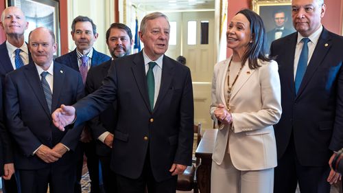 María Corina Machado, cujo partido muitos observadores acreditam ter obtido a vitória eleitoral de 2024 reivindicada pelo ex-presidente deposto Nicolás Maduro, reuniu-se com Donald Trump a portas fechadas esta manhã (horário ADT).