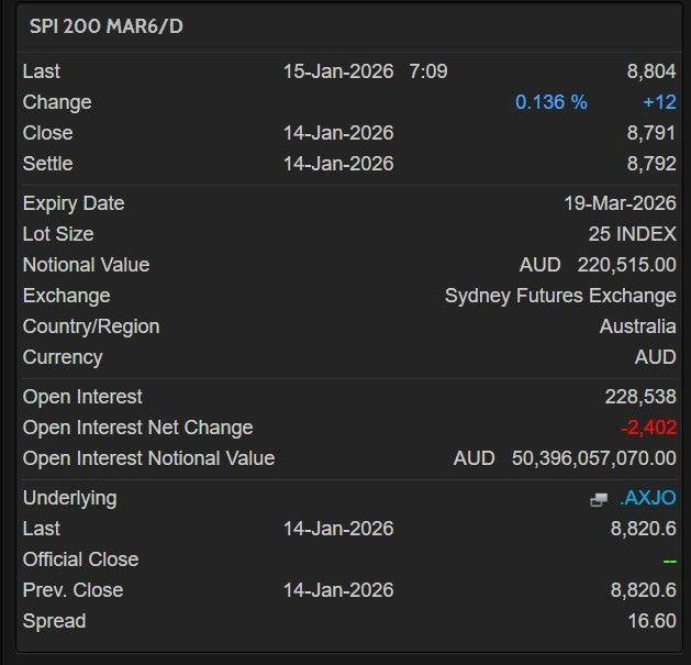 - Futuros ASX 200: +0,1%