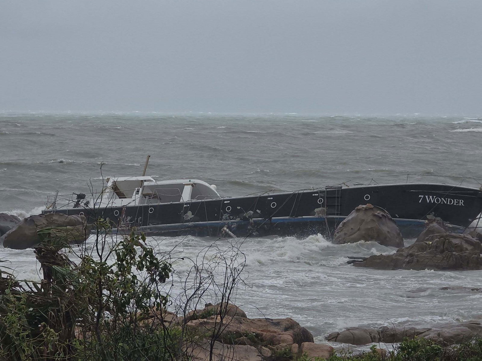 Um grande navio chegou à costa em Bowen quando o ciclone Koji atingiu o norte de Queensland.