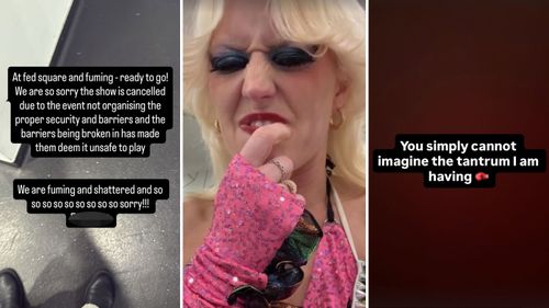 A Fed Square disse em comunicado que foi forçada a cancelar o show “depois que múltiplas violações da cerca do perímetro levaram a um risco muito alto de aglomeração de multidões”.