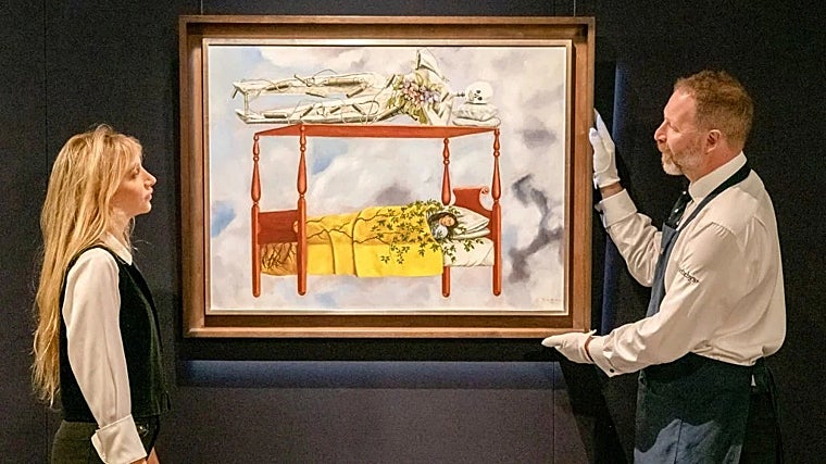 E continuamos na Sotheby's, que na quinta-feira, dia 20, colocará à venda “Dream (Bed)” de Frida Kahlo, que poderá ser leiloado dentro de alguns dias. US$ 60 milhõestornando-se a obra mais cara de um artista da história. O atual recorde de leilão para o trabalho de uma mulher é detido por Jimson Weed/White Flower No. 1, de Georgia O'Keeffe, vendido em 2014 por US$ 44,4 milhões. “Sleep (Bed)” foi pintado em 1940, após a viagem de Kahlo a Paris, onde conheceu os surrealistas. Um ano em que não teve muita produção. Ele o escreveu após o assassinato de Trotsky, que era seu amante, e seu divórcio de Diego Riverao grande amor de sua vida. Kahlo se retrata dormindo em uma cama de dossel coberta de plantas. Na cama está um esqueleto decorado com dinamite e flores. Foi exibido pela última vez na década de 1990. Pertence a uma coleção particular de arte surrealista fora do México. Quem sabe se o colecionador argentino Eduardo Costantini, caçador das obras mais icônicas da arte latino-americana, está de olho (e continuará de olho). Adquirida em 2021 “Diego e eu”autorretrato de Frida Kahlo, por US$ 34,9 milhões.